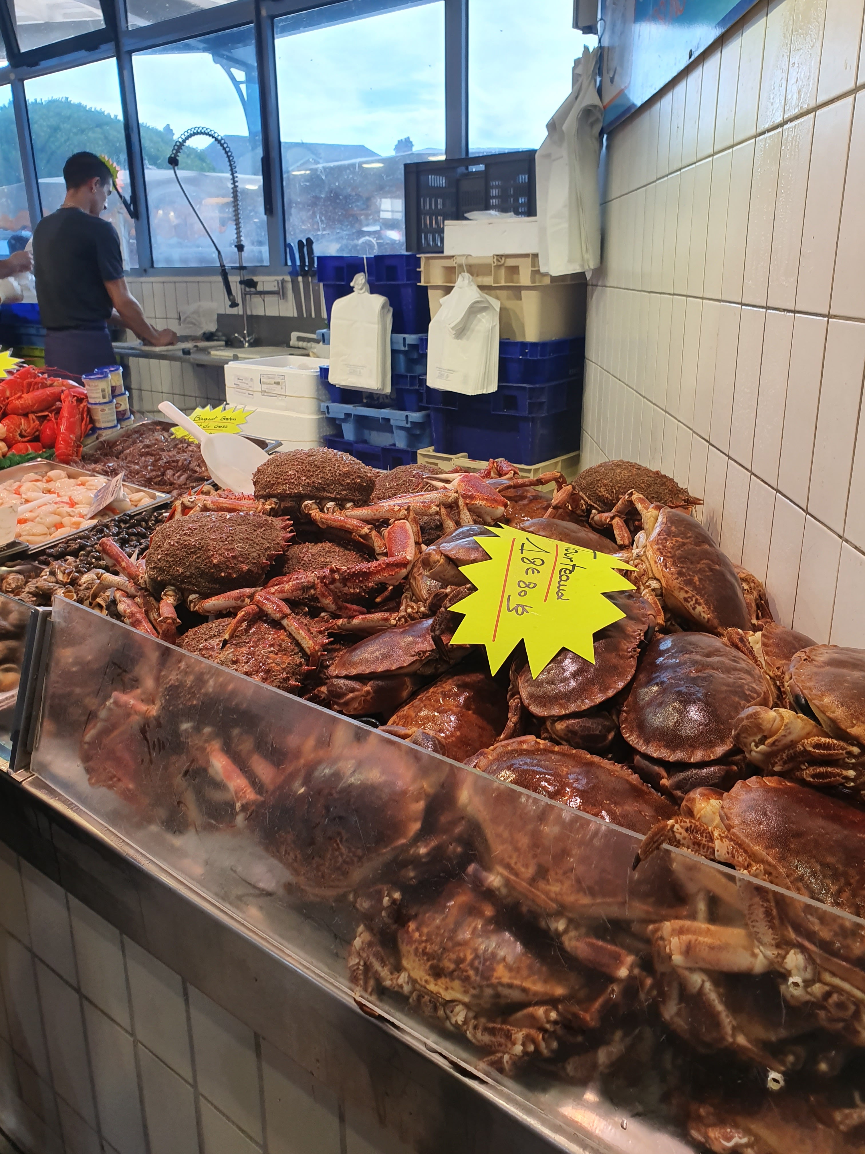 T bien la halle de pornichet nbx vendeurs de poissons donc tourteaux bulots... Par ctr prévoyez 1 disque de stationnement. On en vend en face au tabac.