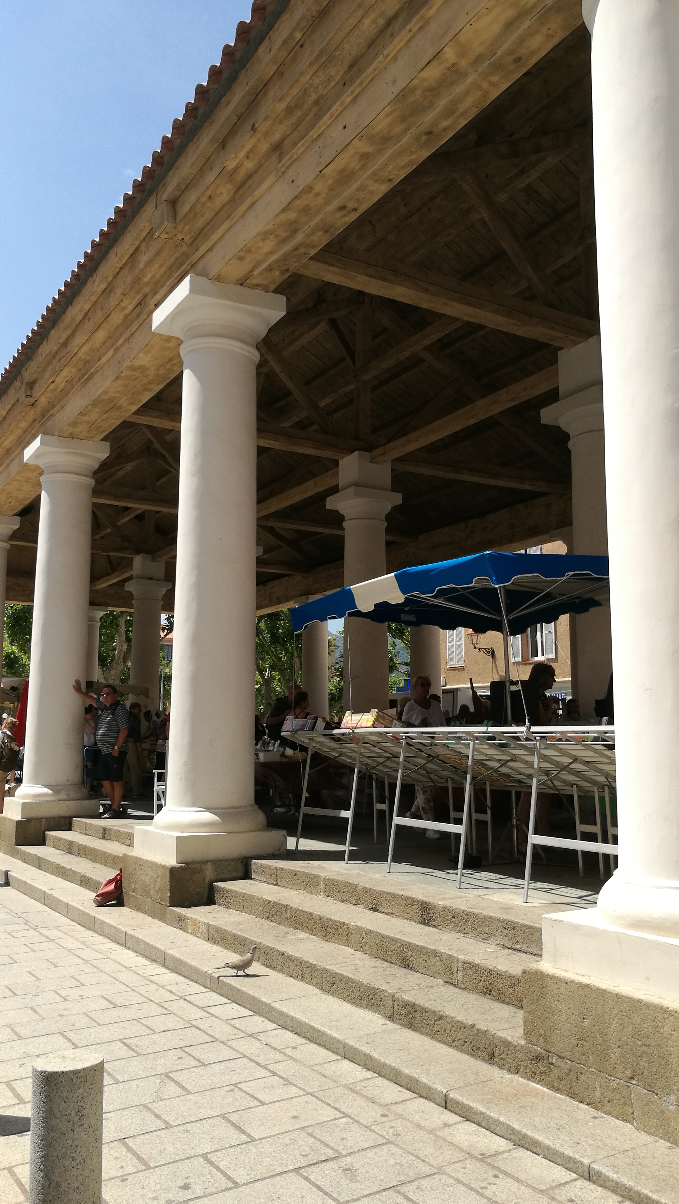 Petit marché abrité sous un beau bâtiment à colonnes. Vaut la visite pour la charcuterie corse à prix raisonnable, que nous avons trouvée chez deux artisans qui élèvent les animaux, réalisent les saucisses, le lonzo et autres, les font fumer, sécher et viennent les vendre sur ce marché: charcuterie Le cochon d'Or. Parking à proximité.